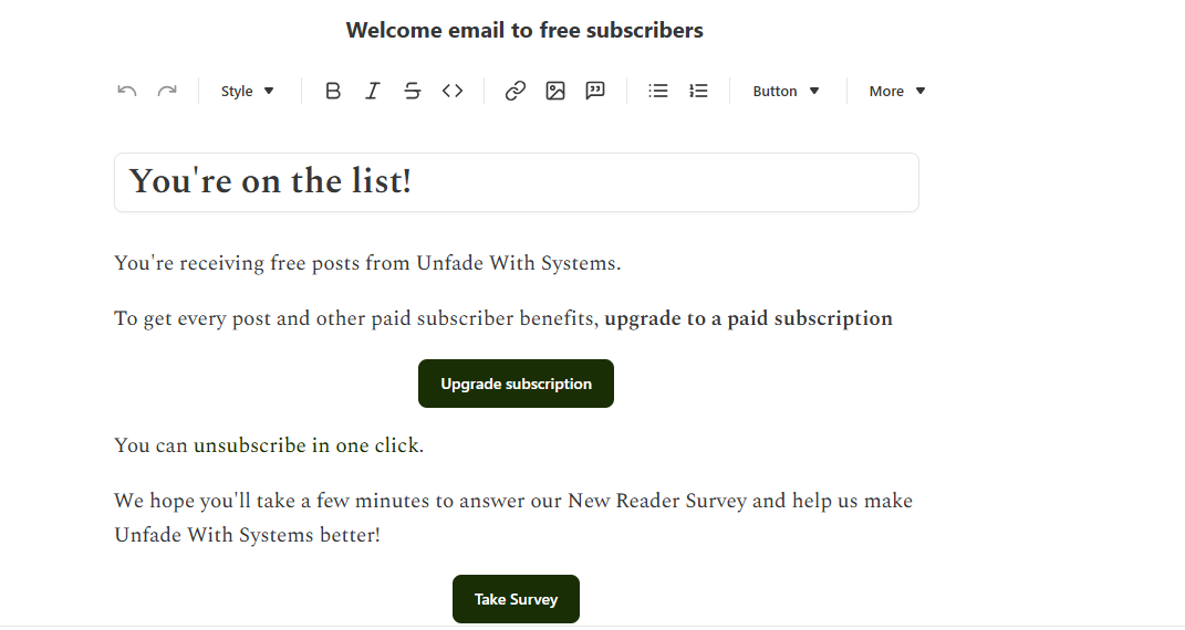 Now let’s talk about my own Substack welcome email. There’s one thing I should admit before we start.It might seem minor, but it matters for the examples ahead.